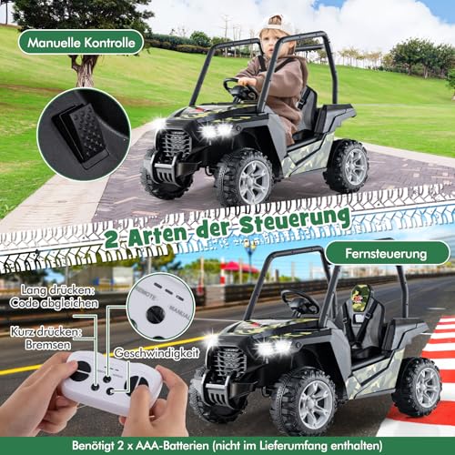 Musikalisches Erlebnis: Verwandeln Sie jede Fahrt in ein musikalisches Ereignis mit diesem UTV, das als mobiles Mediencenter dient. Ausgestattet mit Hupe, MP3, USB-Anschlüssen und kabelloser Verbindung für endlose Musik, die Kinder lieben.