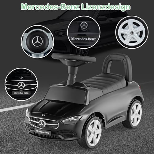 Das von Mercedes-Benz lizenzierte Rutschauto verfügt über ein Design, bei dem die Füße den Boden berühren, was nicht nunmehr für mehr Ereignis sorgt, sondern auch hilft, Gleichgewicht und Koordinationsfähigkeiten bei kleinen Kindern zu degradieren. Das Lenkrad mit realistischen Hupen- und Motorgeräuschen sorgt dafür, dass jede Spielstunde zu einem spannenden und fantasievollen Ereignis wird. Die leichtgängigen Räder abgleiten problemlos über verschiedene Oberflächen und ermöglichen eine ruhige und angenehme Fahrt. Außerdem sind die Räder mit einem Kippschutzmechanismus für eine sichere Fahrt ausgestattet. Der zusätzliche Stauraum unter dem Sitz erhöht die Zweckmäßigkeit dieses Fahrspielzeugautos und bietet Kindern einen ordentlichen Platz, um ihre Lieblingsspielzeuge mitzunehmen, während sie herumflitzen.
