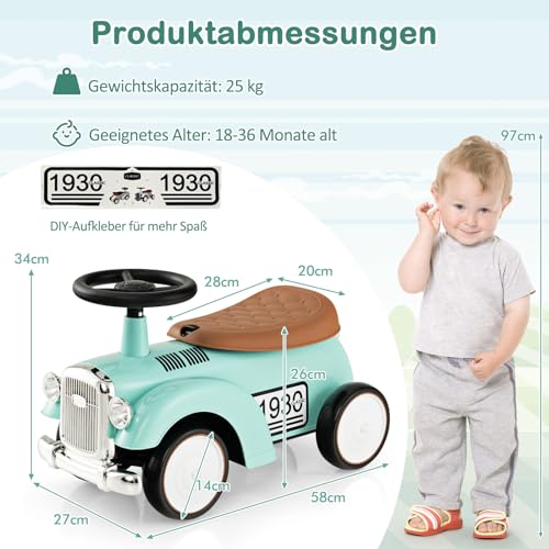 Das perfekte Geschenk für Ihr Nachwuchs: Dieses Kinderauto im Retro-Stil ist das ultimative Geschenk für jedes Nachwuchs! Kinder können damit spielen, um ihre Beinmuskeln effektiv zu einüben, die Motorik zu aufheben, das Gleichgewicht zu entwickeln, die Koordination zu bessern, das Selbstvertrauen zu stärken und vieles mehr.