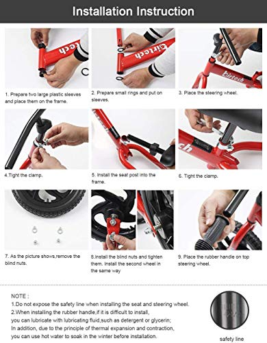 【Verstellbarer Lenker & Sitz】Innerhalb des Bereichs der Sicherheitsleinen (Sitzhöhe: 36,5-41 cm, Lenkerhöhe: 54 cm – 58 cm) können Sie die entsprechende Position feststehend an die Größe Ihres Kindes portieren. Adäquat für Kinder von 1-4 Jahren. Einfache Montage erforderlich.