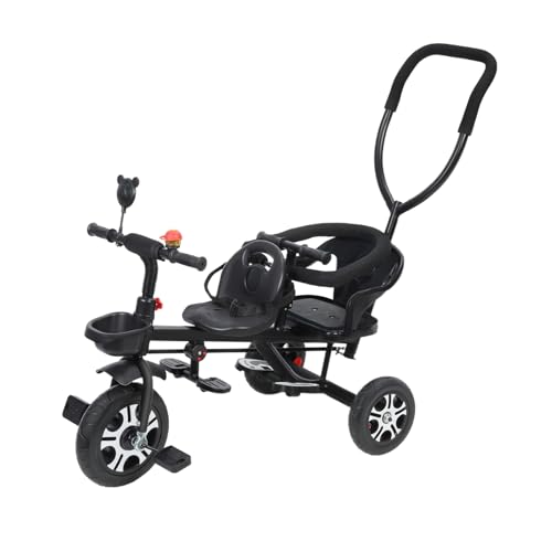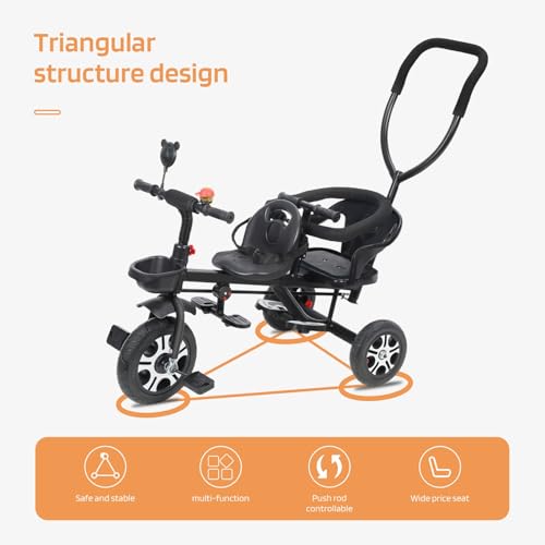 Schiebegriff und sichere dreieckige Struktur: Das Dreirad verfügt über einen Schiebegriff für mehr Sicherheit beim Fahren. Die ergonomisch geformten Doppelsitze bieten bequem Platz für zwei Kinder. Die dreieckige Struktur sorgt für Stabilität und reduziert das Risiko des Umkippens, wodurch Kinder im Alter von 2 bis 8 Jahren gefestigt fahren können.
