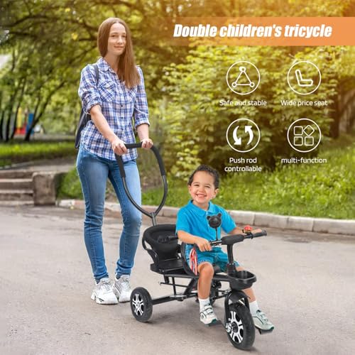 Schiebegriff und sichere dreieckige Struktur: Sie können nach vorne schieben oder einen Schiebegriff verwenden, um die Sicherheit beim Fahren zu erhöhen. Dreiräder für Kinder mit zwei ergonomisch geformten Abbrummen für zwei Personen. Wir haben eine dreieckige Struktur verwendet, um zu verhindern, dass das Spiel oder äußere Einflüsse entspringen, da Vorschulkinder auf Zweisitzer-Dreirädern mit Beifahrersitzen zwischen zwei und acht Jahren fahren dürfen. Dies reduziert das Unfallrisiko.