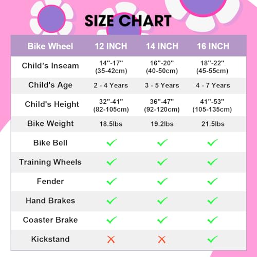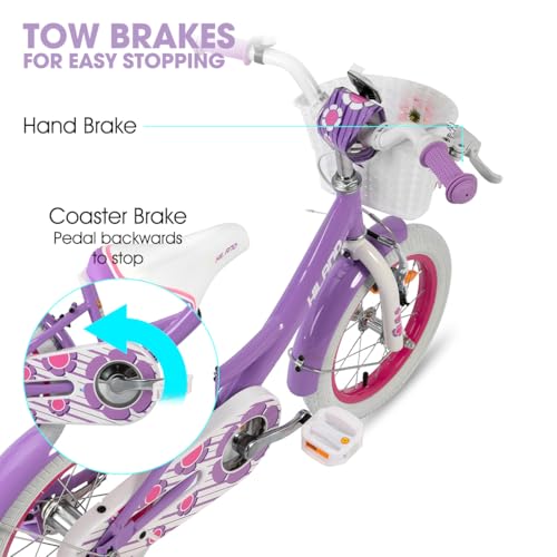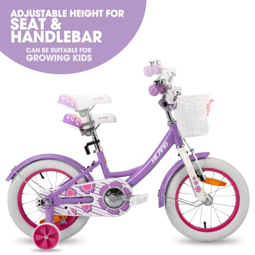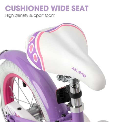 HILAND 12/14/16 Zoll Mädchenfahrrad, Kinderfahrrad für Mädchen, mit Korb und Stützrädern, Rosa/Lila/Weiß