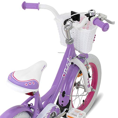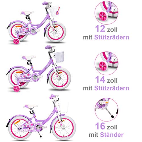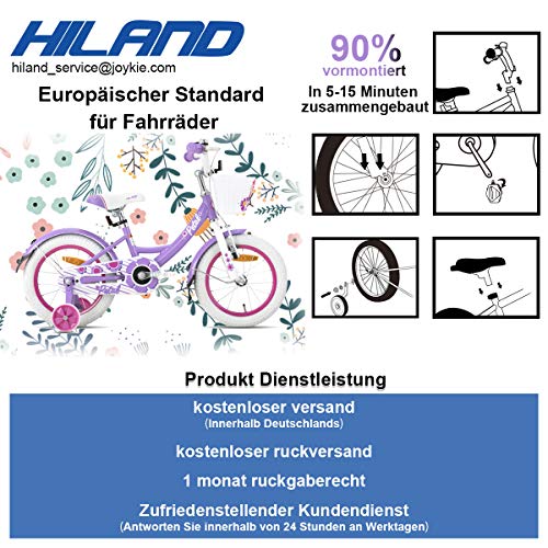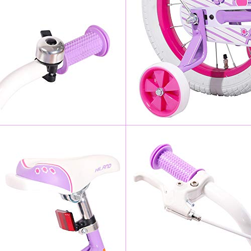 Hiland 12/14/16 Zoll Kinderfahrrad für Mädchen ab 3/4/5/6 Jahren Fahrrad mit Korb, Stützrädern/Ständer, Handbremse und…