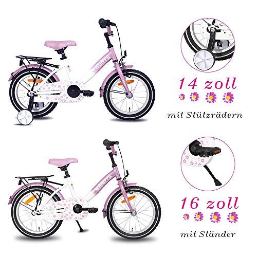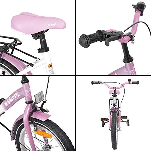 HILAND Starry 12-16 Zoll Kinderfahrrad | TÜV getestet | für Mädchen mit Handbremse,Rücktrittbremse,Gepäckträger