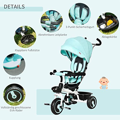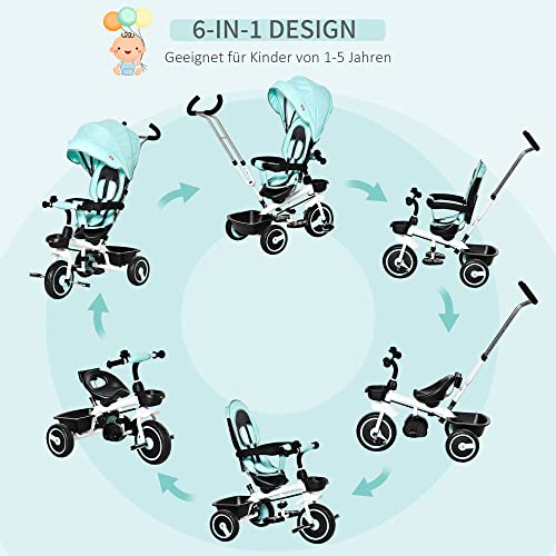 HOMCOM 2 in 1 Kinderdreirad Jogger mit Lenksystem Stange Korb Sonnendach für 1-5 Jahre Samt-Touch Grün 100 x 48 x 106 cm