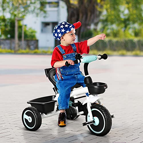 Multifunktional: Dieses Dreirad verfügt über einen abnehmbaren Schiebegriff für die Eltern und eine Rückenlehne. Es wird alias mit 2 Aufbewahrungskörben geliefert, in denen Sie Zubehör aufbewahren können.
