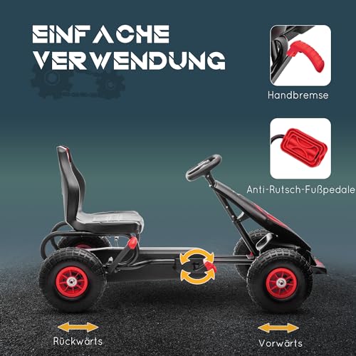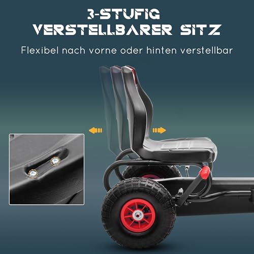HOMCOM Gokart, Kinderfahrzeug mit verstellbarem Sitz, Tretfahrzeug mit Gummireifen, Pedal und Handbremse, Kettcar für 5-12 Jahre Kinder, Outdoor, Rot