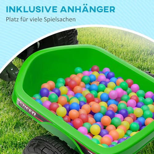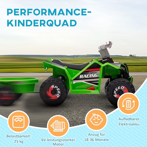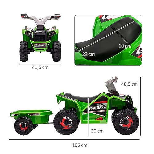 HOMCOM Kinder Elektro-Quad 6V Kinderquad, Kinderfahrzeug, Elektroauto mit Anhänger für Kinder 1,5-3 Jahre, 2,5 km/h, Metall, 106 x 41,5 x 48,5 cm, Grün