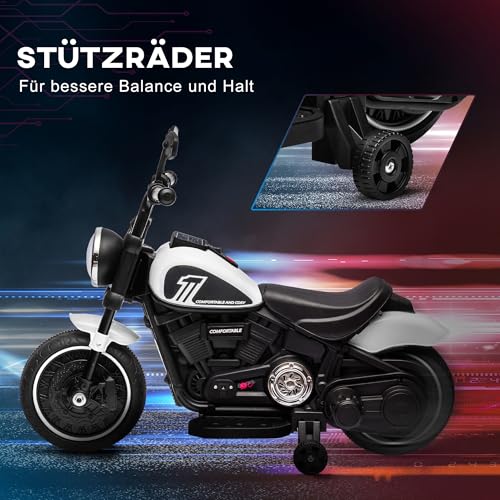 HOMCOM Kindermotorrad Kinder Elektro-Motorrad Elektrofahrzeug Kinderfahrzeug mit 2 abnehmbaren Stützrädern, 3 km/h, für 1,5-3 Jahre Kinder Weiß 76 x 42 x 57 cm