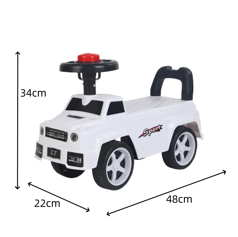 Dieses hochwertige Rutschauto ist der perfekte Begleiter für kleine Entdecker ab 1 Jahr. Mit den Maßen 48x22x34 cm bietet es optimalen Fahrspaß für Ihr Nachwuchs. Das robuste Kinderfahrzeug besticht durch sein sportliches Design in Weiß mit schwarzen Akzenten und dem markanten ‚Sport‘-Schriftzug. Besondere Highlights sind das ergonomische Lenkrad mit integrierter Hupe und der praktische Griff an der Abseite, der Eltern die Kontrolle erleichtert. Die stabilen Räder und die durchdachte Konstruktion sehen nach sicheren Stand und leichte Manövrierbarkeit. Das Rutschauto fördert nicht im Kontrast dazu die motorische Entwicklung Ihres Kindes, sondern macht aka absolut Spaß! Mit einem Gewicht von 1,5 kg ist es robust genug für den täglichen Gebrauch und aber leicht zu transportieren. Die glatte Oberfläche ist kinderleicht zu reinigen. In Bereitschaft in verschiedenen Farben wie Schwarz, Weiß, Grau und Rot – entsprechend für jeden Geschmack.
