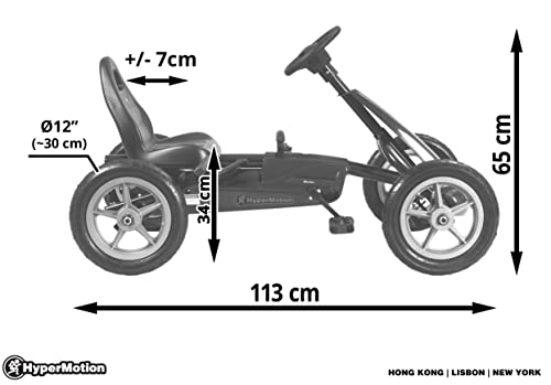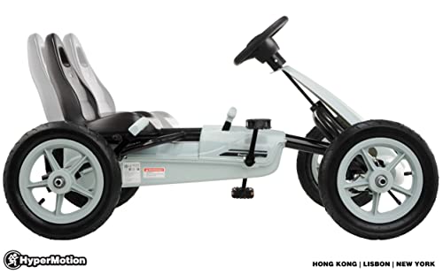 HyperMotion Go-Kart Tretfahrzeug – Kinderfahrzeug ab 5 Jahren – Verstellbarer Sitz mit Doppelhandbremse – 30cm Räder – Vorwärts & Rückwärts Fahrfunktion – Grau