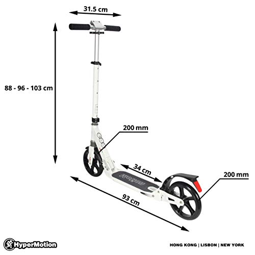 ABMESSUNGEN: 93 x 103 cm. Belastung: 100 kg. Höhenverstellung des Lenkrads: 88-96-103 cm. Produktgewicht: 5,5 kg. Lager: ABEC-7