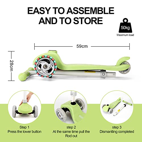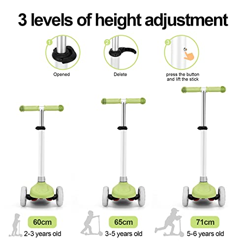 3-stufige verstellbare Höhe: Der Tretroller-Design mit verstellbarem Lenker mit 3 verschiedenen Höhen von 60 cm, 65 cm, 71 cm. Empfohlenes Alter unseres Rollers ist 2 bis 6 Jahre alt mit einem Gewicht von 50 kg. Abnehmbares Design ist ideal für Reisen oder Lagerung.