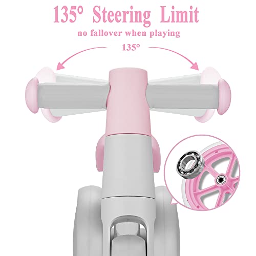 【Sicheres Design für Kleinkinder】 Die Baby-Laufrad Höhe vom Boden bis zum Griff (0,3 m) und von Boden zu Sitz (0,2 m) sorgt dafür, dass die Füße Ihres Kindes immer den Boden berühren, sodass sie die Kontrolle über Geschwindigkeit, Stopp und Bewegung behalten. Mit 135°-Lenkbegrenzer, um zu verhindern, dass Ihr Baby umrollt. Baby’s First Bike Gift