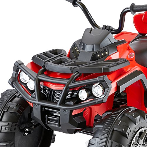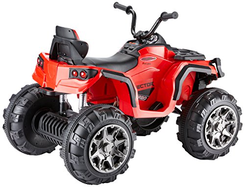 Mit diesem Ride-On Quad von Jamara abtransportieren sie sich ein echtes Spaßgerät nach Hause. Aufsitzen, Startknopf drücken, LED-Licht an und Gas geben. Welches Abkömmling träumt nicht davon. Derzeit kann dieser Traum wahr werden – mit dem Protector-Quad von Jamara. Mit einem wuchtigen-Chassis, Multifunktions-Armaturenbrett, und tollen Soundeffekten kommen die robusten Spaßfahrzeuge allerdings. Zwei leistungsstarke 12V Motoren treiben die beiden Hinterräder des Fahrzeuges an. Die Elektronik regelt die automatische Differentialfunktion im 1. Gang für agile Kurvenfahrten und verteilt im Turbogang die ganze Kraft gleichmäßig auf alle beide Räder. Also ist das Quad fast allen Hindernissen gewachsen. Mit ca. einer Stunde Fahrzeit mit daher einer „Tankfüllung“ ist echter Spielspaß garantiert. Einfach an der Steckdose auftanken und loscruisen.