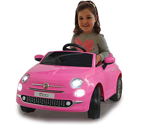 JAMARA 460443 – Ride-on FIAT 500 12V – 2 leistungsstarke Antriebsmotoren und Akku für Lange Fahrzeit, Licht EIN/aus, LED…