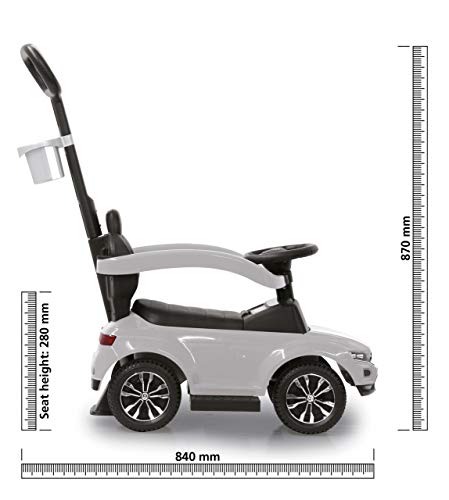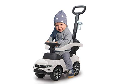 JAMARA 460463 – Rutscher VW T-ROC 3in1 – Kinderfahrzeug, Kippschutz, Kofferraum, Schub-und Haltestange mit Lenkfunktion…