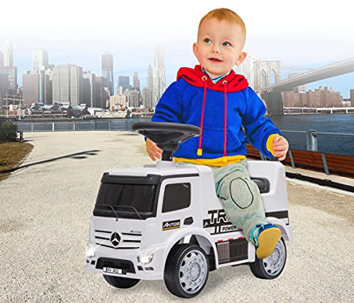 JAMARA 460657 Rutscher Mercedes-Benz Antos-ab 12 Monate, Sitzhöhe 280 mm, Kippschutz, Kofferraum unter der Sitzfläche, Schub-und Haltegriff, LED Licht vorne EIN/aus, weiß