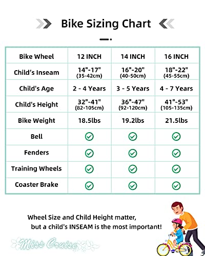 Größentabelle: 30,5 cm Fahrrad ist sinnvoll für 2-4 Jahre (33-41 Gebühr) Mädchen; 35,6 cm Fahrrad ist sinnvoll für 3-5 Jahre (89-119,4 cm) Mädchen; 16 Gebühr Fahrrad ist sinnvoll für 4-7 Jahre (41-53 Gebühr) Mädchen. 18 Gebühr Fahrrad ist sinnvoll für 5-9 Jahre (109-149,9 cm) Mädchen. Das Fahrrad wird mit eingeschränkter lebenslanger Garantie für Rahmen und Gabel sowie zeitgerechter Kundenservice geliefert.
