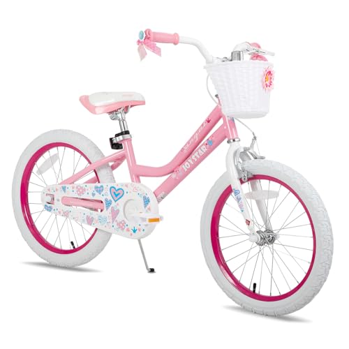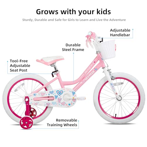 JOYSTAR 18 Zoll Kinderfahrrad für 6-9 Jahre alte Mädchen, 18 Zoll Mädchenfahrrad mit Stützrädern und Korb,Hellrosa