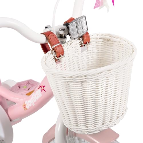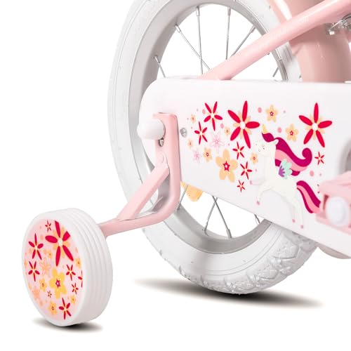 JOYSTAR New Einhorn 12/14/16/18 Zoll Kinderfahrrad für 3-9 jährige Mädchen, Mädchen Kinderfahrrad mit Puppenradsitz & Stützrädern& Korbstreamer, 18 Zoll mit Stützrädern&Kickstand
