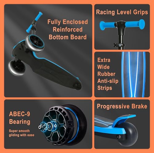 🛴 SICHER & ROBUST: Dieser kinderroller ist mit einer ohne Lücke geschlossenen Verstärkungen an Unterboden und Abseitsstellung breitem Anti-Rutsch-Gummi gebaut, die für Stabilität sorgen und Unfälle vermeiden.
