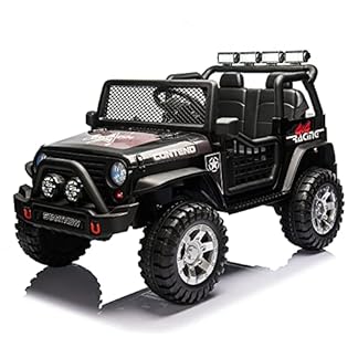 Kinder Auto Elektro, Elektroauto für Kinder 2 Sitzer Mit 12V Batterieleistung, 2x45W Motor, 2,4G-Fernbedienung, 3 Geschwindigkeiten, LED-Lichter, Hupe, Musik, UKW-Radio ab 3 Jahre (Schwarz)