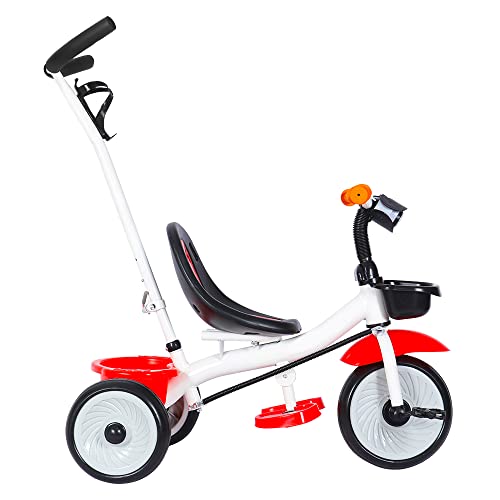 Kinder-Dreirad mit wendbarem Sitz, Dreirad für Kinder, mit verstellbarem Gehstock und abnehmbaren Pedalen, Dreirad zum Schieben für Mädchen und Jungen (weiß-rot)