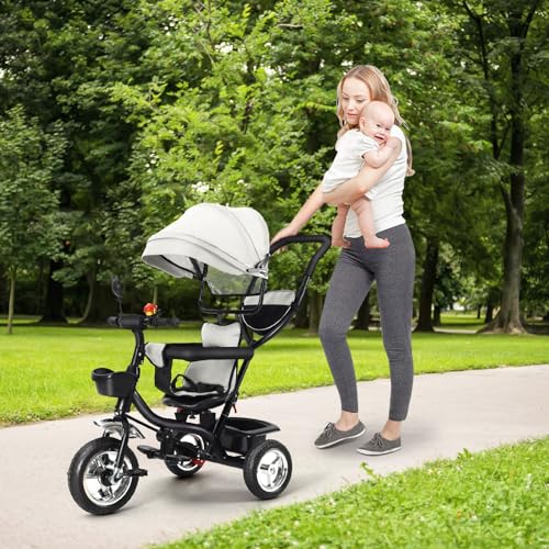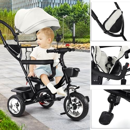 Einstellbare Stowable Pedals – Wenn das Baby wächst, können die Pedale leicht verstaut werden, um frei zu fahren. Kinderdreirad mit wendbarem Sitz, strukturierter Griff, bequemer, sicherer und rutschfester Griff.