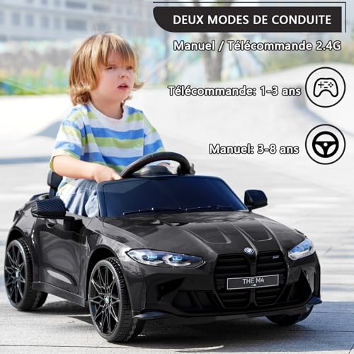 Kinder Elektroauto 12V, Elektrofahrzeug für Kinder mit 2,4G-Fernbedienung mit USB LED und Musik