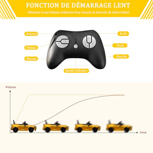 MULTIFUNKTIONSSTEUERKONSOLE: Einfacher Fahrtbeginn mit jedoch einer Berührung. Dieses Elektroauto verfügt über BT-Lautsprecher, Hupe, Scheinwerfer und Hoch-/Niedriggeschwindigkeitsfunktion, sodass Kinder das echte Fahrerlebnis mit diesem Auto genießen können.