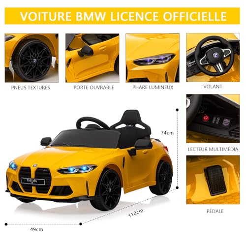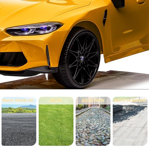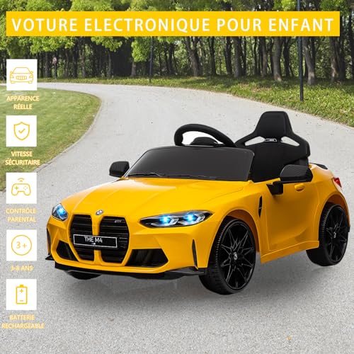 Kinder Elektroauto lizenziert BMW M4 mit 2,4G-Fernbedienung, 12V Elektrofahrzeug für Kinder Geschwindigkeit 3 ​​km/h, Hupe, LED und Musik, für Kinder ab 3 Jahre (Gelb)