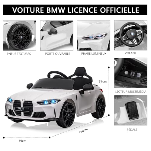 Kinder Elektroauto lizenziert BMW M4 mit 2,4G-Fernbedienung, 12V Elektrofahrzeug für Kinder Geschwindigkeit 3 km/h, Hupe, LED und Musik, für Kinder ab 3 Jahre (Weiß)