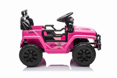 Kinder elektroauto Offroad New mit Hinterradantrieb, rosa, Lithium-Batterie, hohes Fahrgestell, breiter Sitz, Hinterradfederung, 2,4-GHz-Fernbedienung, MP3-Player mit USB/AUX-Anschluss, LED-Leuchten