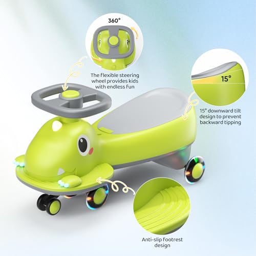 Einfache Bedienung: Das Wackelauto ist mit einem 360°-Lenkrad ausgestattet, sodass Ihr Heranwachsender das Auto durch einfaches Drehen oder Rutschen mit den Füßen leicht manövrieren kann. Dies fördert die Hand-Auge-Koordinierung und sorgt für ein angenehmes Fahrerlebnis.