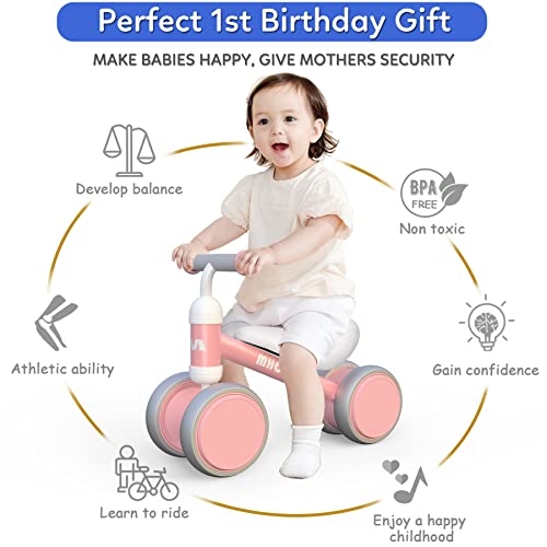 MHCYLION Kinder Laufrad ab 1 Jahr Balance Lauflernrad Spielzeug mit 4 Räder für 10-24 Monate Baby, Erst Rutschrad Fahrrad für Jungen Mädchen als Geschenke Rosa