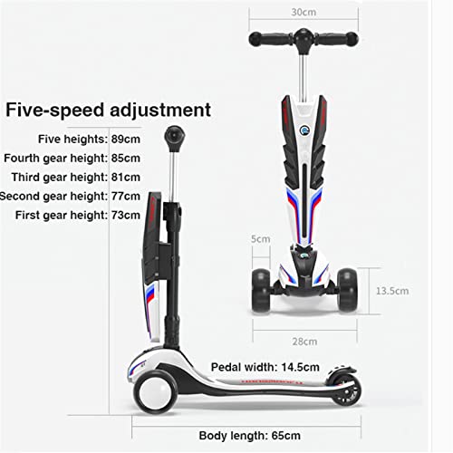 [Faltbarer Roller, fünfstufige höhenverstellbare] Kinderroller kann leicht gefaltet und überall getragen werden, sehr geeignet für Reisen und Lagerung. Einstellbarer Griff, fünf höhenverstellbar, Fragment 73-77-81-85-89 cm).