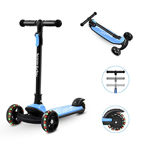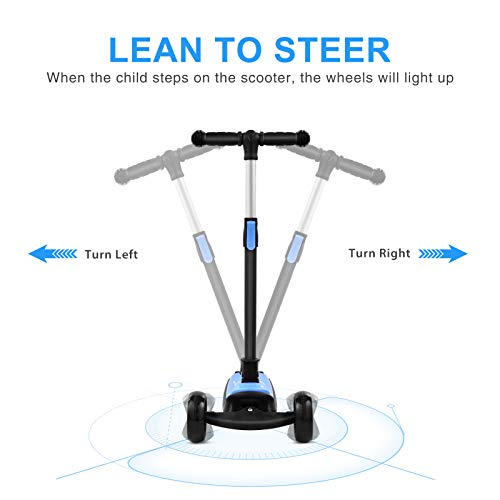 Kinder Tretroller mit 3 Rädern Höhenverstellbar, Faltbarer Blau Scooter im Freien mit Blinkenden LED Lichtern…