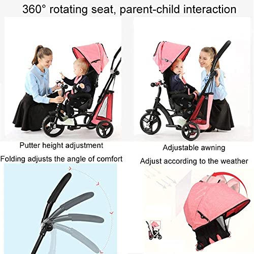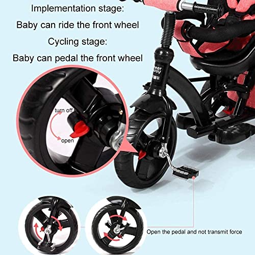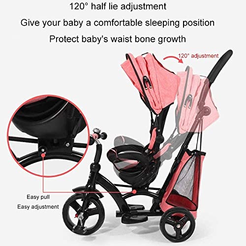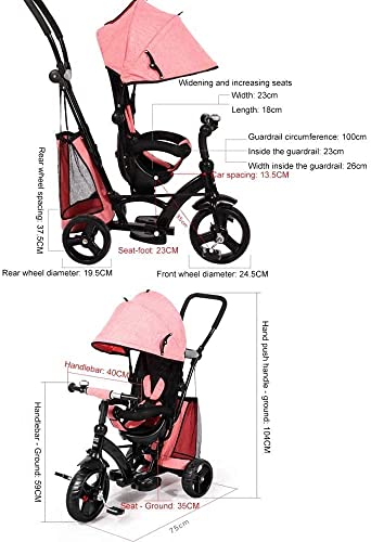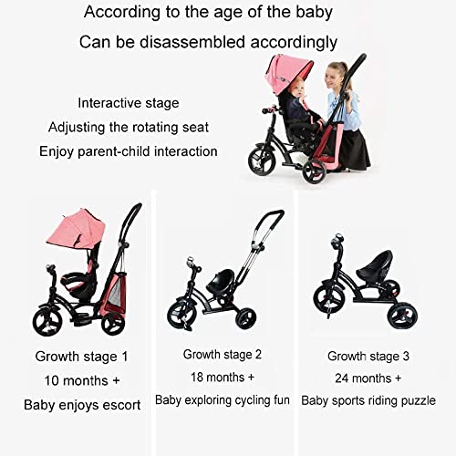 2. 4-in-1-Multifunktion: Verwandelbar in Kinderwagen und Dreiräder. Abhängen Sie den Handputter und die Markise, und das Geländer als Dreirad.