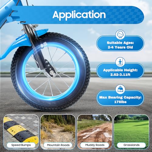 Stabiles Radfahren: Elastische, stoßabsorbierende Gummireifen und 2 Trainingsräder, die eine stabilisierende Dreiecksstruktur bilden, Acht geben ein stabileres Fahrgefühl aka auf Schlamm, Sand und Bergstraßen.