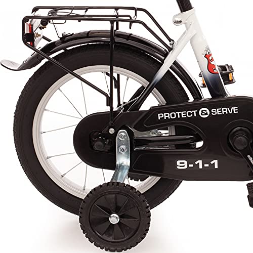 Reflektoren, Klingel, Polster, geschlossener Kettenkasten, Stützräder, Korb, Kantenschutz an den Schutzblechen, Gepäckträger.