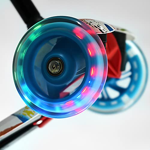Sein farbenfrohes Design, die beleuchteten Reifen, die leichte Aluminiumkonstruktion, die robuste Hinterradbremse und der höhenverstellbare Lenker machen ihn zur bevorzugten Kür für das Spiel.