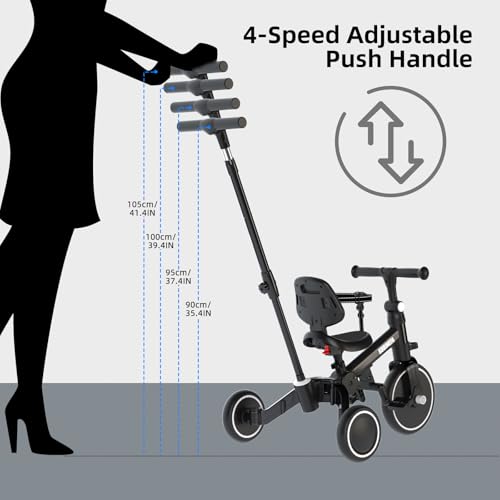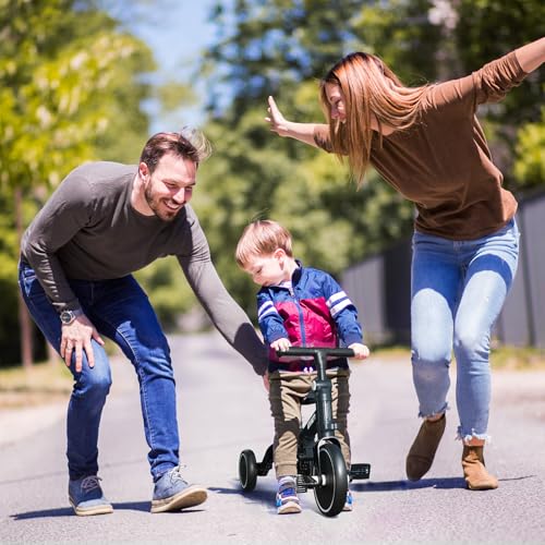 【6 IN 1 Kinder-Dreirad】Dreirad-Modus mit Schubstange, Laufrad-Modus mit Schubstange, Balance-Laufrad-Modus, Dreirad-Modus, Gleitungsrad-Modus, Faltrad-Modus. Wenn Sie die beiden Hinterräder des Dreirads zusammenklappen, können Sie ein zweirädriges Fahrrad bauen, das den Bedürfnissen von Kindern unterschiedlichen Alters entspricht und können mit ihnen mitwachsen.