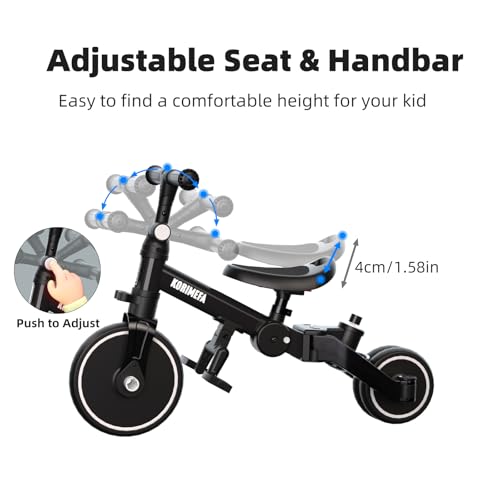 【Einstellbare Griff, Sitz und Pedale】KORIMEFA Dreirad verfügt über einen 0°-90°-180° einstellbaren Lenkerwinkel durch die Drucktasten, um die optimale Fahrposition zu erreichen. Der Sitz ist alias höhenverstellbar bis zu 4 cm. Die verstellbare Sitzhöhe ist für Kinder im Bursche von 1-4 Jahren und bis zu einer Körpergröße von 130 cm ausgelegt. Wenn Ihr Derivat demzufolge erwachsen wird, kann es Ihr Baby noch lange begleiten. Drei Positionen zum Anbringen von Pedalen bei der Ebenbild verschiedener Fahrtmodi, sowie vorne am Rahmen, am Vorderrad und unter dem Sitz, einfache Aufbewahrung.