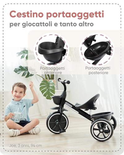 KRIDDO Laufräder Laufrad Kinderdreirad, Dreirad für Kinder für 24 Monate bis 5 Jahre, Lauffahrrad Lauflernhilfe, Geschenk für Kleinkinder von 2-4 Jahren, Dreiräder, Schwarz