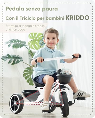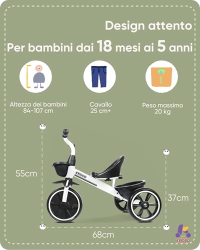 DREIRAD FÜR KINDER – Das KRIDDO Kinder-Dreirad ist für Mädchen und Jungen im Alter von 18 bis 36 Monaten konzipiert, die neugierig und begeistert die Welt erkunden möchten. Es unterstützt die Kleinen dabei, ihre Lenkfähigkeiten sowie ihre Koordination frühzeitig zu entwickeln. Das KRIDDO Kinder-Dreirad für 2-Jährige ermöglicht es Ihrem Kind, das Fahren mit Sicherheit zu genießen, Selbstvertrauen zu gewinnen und die Muskelkraft zu stärken. Es ist ein lustiges Geschenk für die Kleinen.