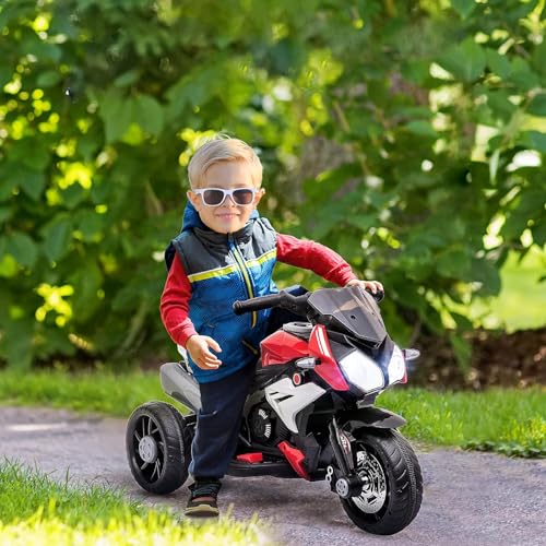 LALAHO Elektro Motorrad Kinder Elektromotorrad Kindermotorrad Kinderfahrzeug, 6 V 7 Ah Elektro-Dreirad für Kinder von 3–6 Jahren (Rot)