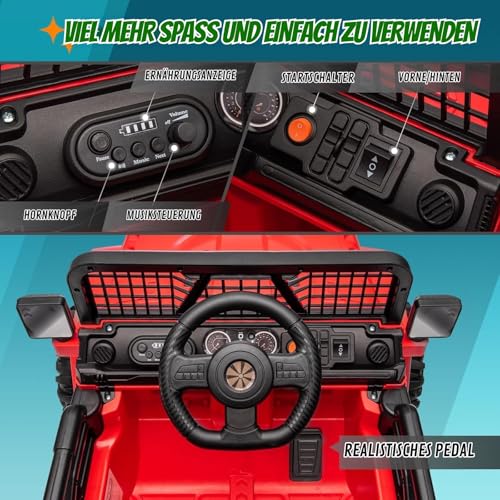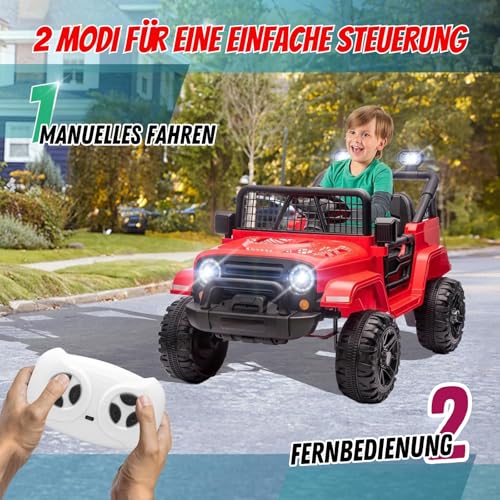 LALAHO Elektroauto für Kinder 12V Elektrofahrzeuge für Kinder mit 2,4 Ghz Fernbedienung (Rot)