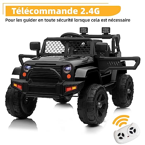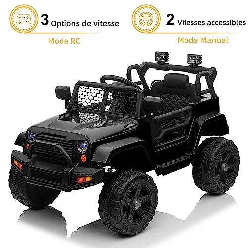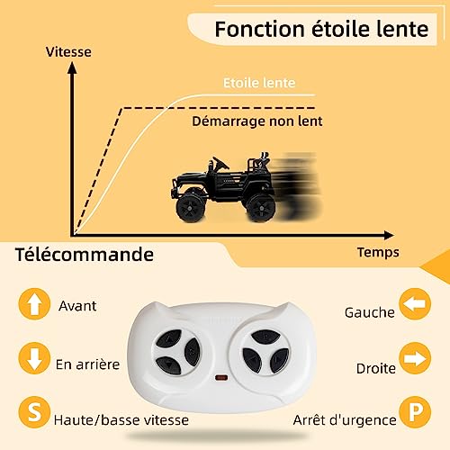 Doppelte Kontrolle: Das Nachwuchs kann selbst fahren oder die Eltern können die Fernbedienung nutzen, um das Kinder Elektroauto zu steuern (Vorwärts/Rückwärts, Stopp, Lenkung und 3 Geschwindigkeiten).